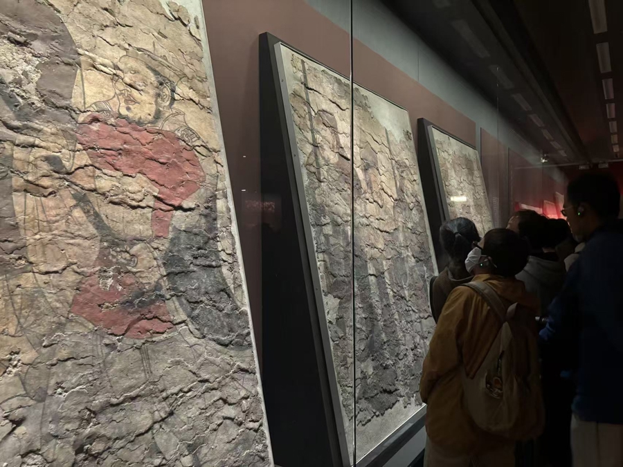 观众驻足观看磁县湾漳大墓的北朝壁画。